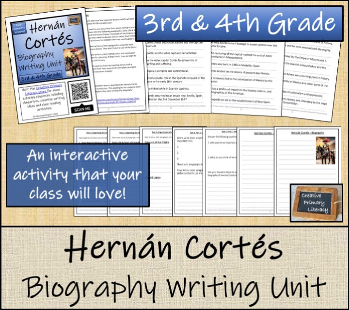 Two great activities that would span five lessons about the famous Spanish conquistador and explorer responsible for the downfall of the Aztec Empire, Hernán Cortés. Perfect for students in third grade or fourth grade.