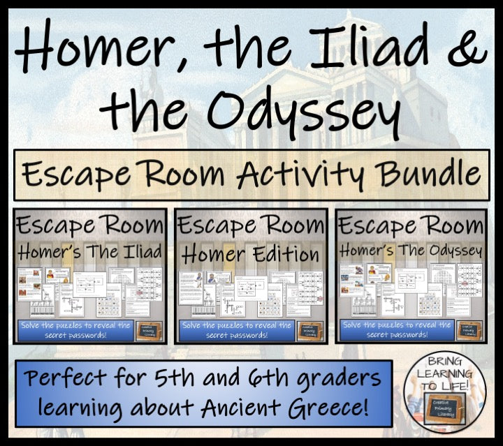 Homer, The Iliad and The Odyssey Escape Room Activity Bundle | 5th & 6th Grade