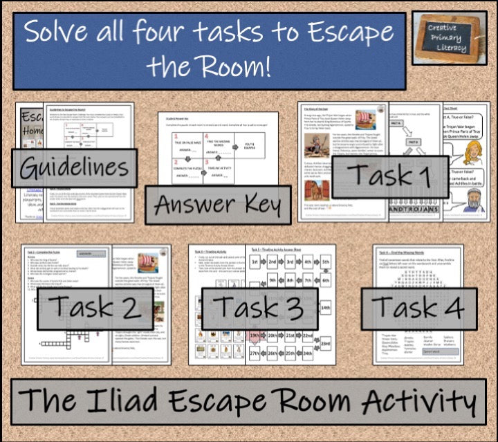 Three individual Ancient Greece Escape Room activities about the famous storyteller, Homer and his stories - The Iliad and The Odyssey.