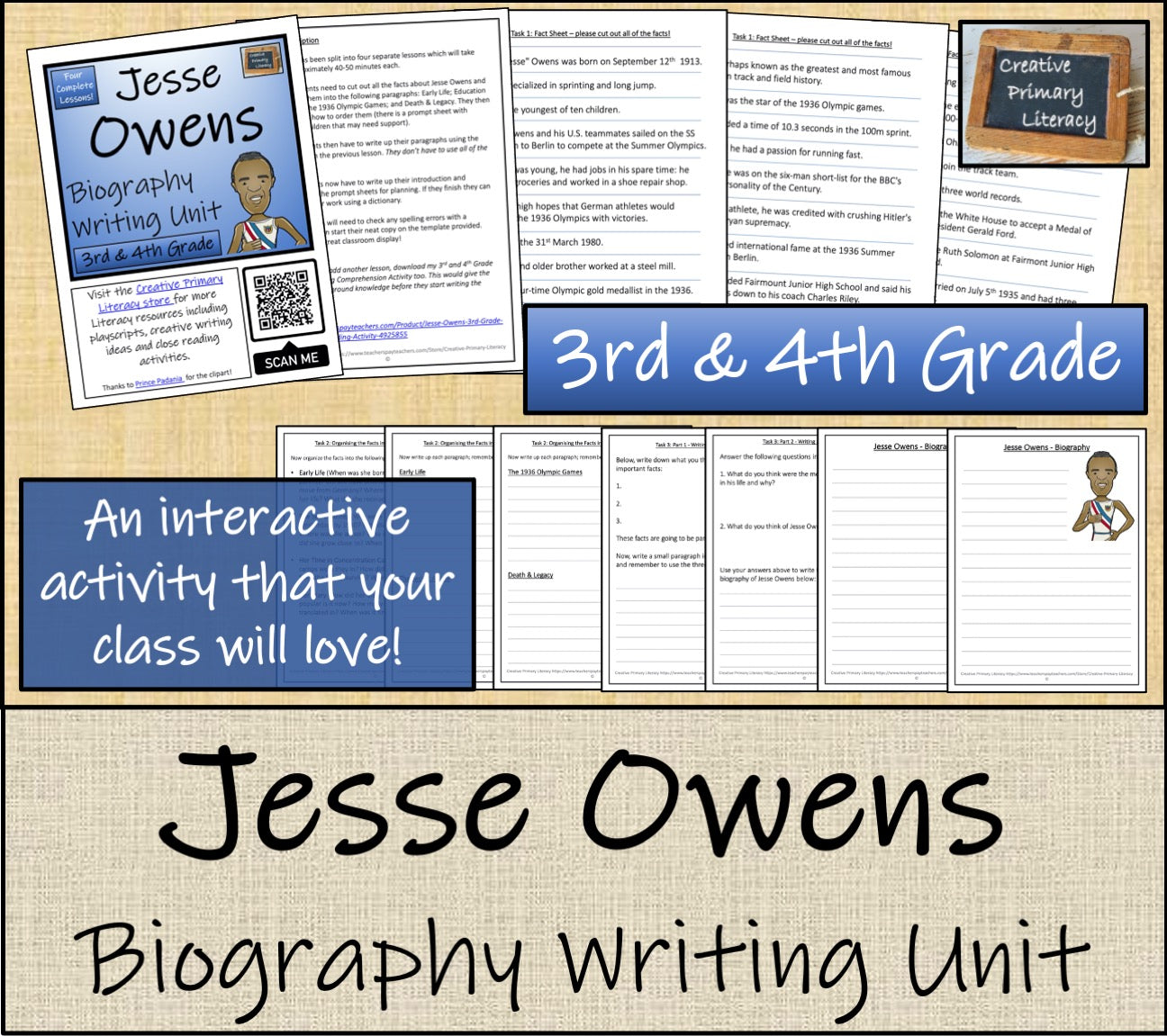 A biography writing unit about the life of American Olympic superstar Jesse Owens. The NO PREP unit has been split into four separate lessons and is perfect for students in third grade or fourth grade.