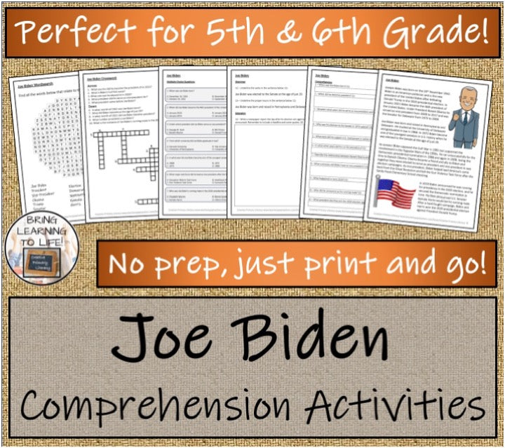 Two great activities that would span five lessons about the president of the United States, Joe Biden. Perfect for students in fifth grade or sixth grade. NO PREP is needed!