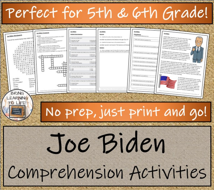 Joe Biden Close Reading Comprehension Activities | 5th Grade & 6th Grade