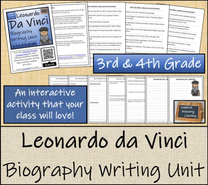 Two great activities that would span five lessons about the famous Italian artist, Leonardo da Vinci. Perfect for students in third grade or fourth grade.