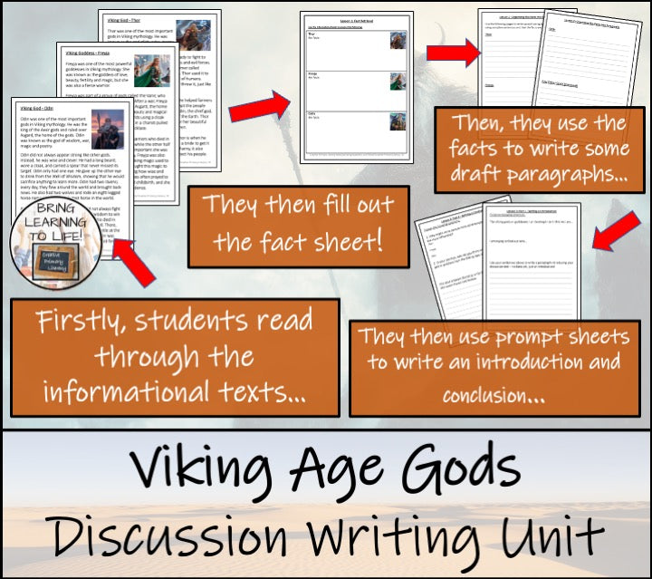 A discussion writing unit allowing children to research, discuss and write about who was the most important god of the Viking Age: Thor, Freyja or Odin. The unit has been split into four separate lessons which and is perfect for students in third grade or fourth grade.
