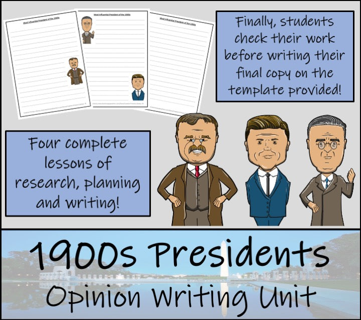 Most Influential 1900s President Opinion Writing Unit | 5th Grade & 6th Grade