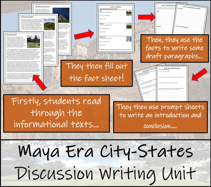 A discussion writing unit allowing students to research, discuss and write about which city-state of the Maya Empire was the most powerful and influential: Tikal, Calakmul or Chichen Itza. The unit has been split into four separate lessons which and is perfect for students in fifth grade or sixth grade.