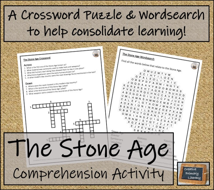 An informational writing unit about the Stone Age. The unit focuses on key facts about the three periods of the Stone Age: the Paleolithic Era, the Mesolithic Era and the Neolithic Era. The unit has been split into three separate lessons and is perfect for students in fifth grade and sixth grade. A crossword puzzle and wordsearch activity also come with the resource to consolidate learning.