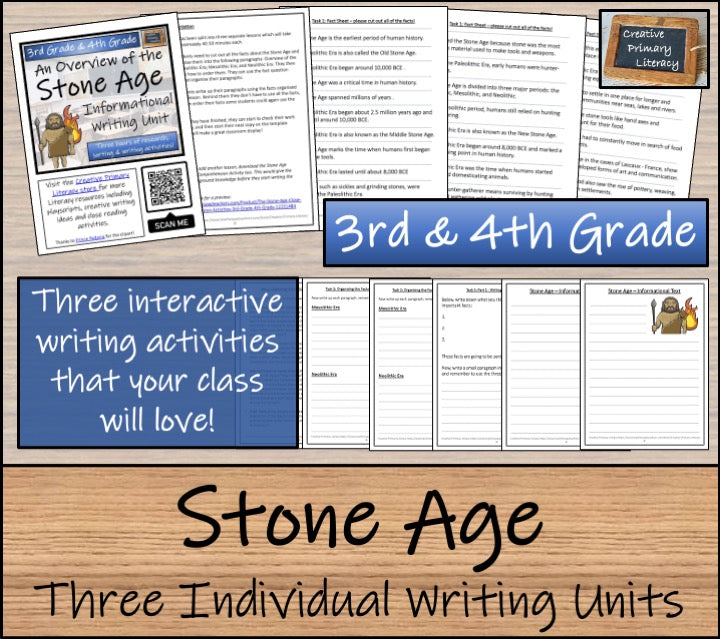 Then, there are two informational writing units about the Stone Age and Stonehenge. The units have been split into four separate lessons which will take students approximately 40-50 minutes each.