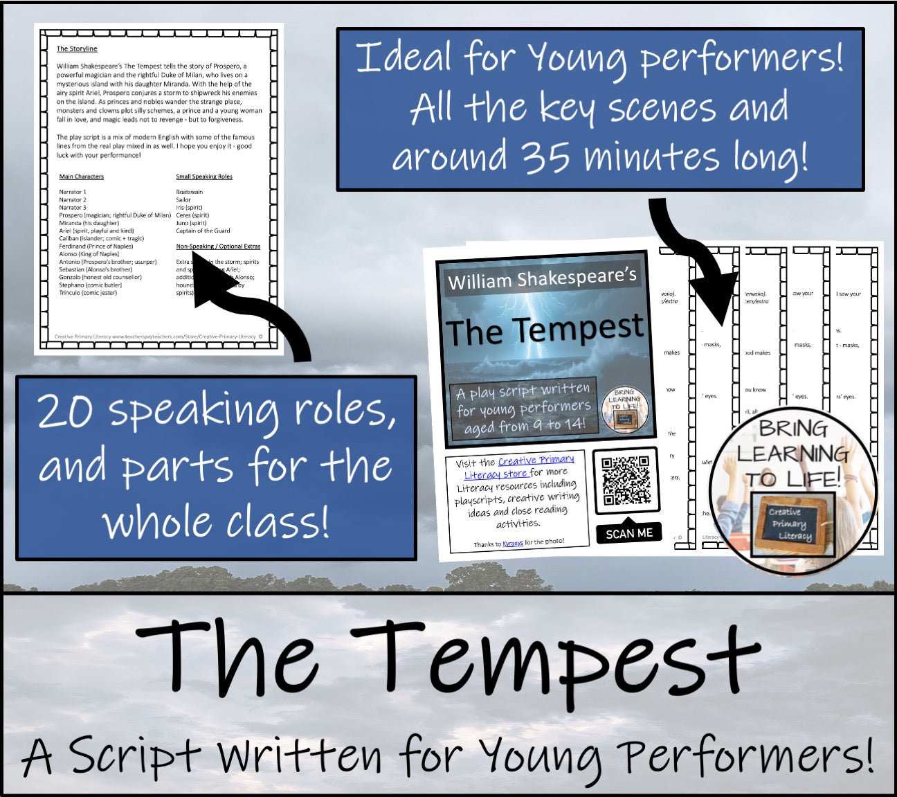 This is a play script for William Shakespeare's The Tempest, which has been rewritten for students from third grade to seventh grade. The script now also comes with a PDF teacher presentation to help you introduce the play and the characters to your students.