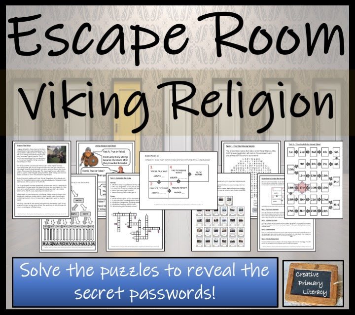 An Escape Room activity about the religion of the Vikings. Ideal for fifth grade or sixth grade, the activity is perfect for group work, starting a new topic, team-building activities or for a fun, engaging and interactive lesson. The activity can be used in English class as it incorporates some ELA skills or in Social Studies.