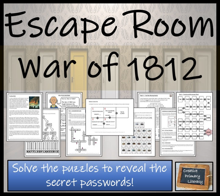 A War of 1812 Escape Room activity. Ideal for fifth grade or sixth grade, the activity is perfect for group work, starting a new topic on US history, team-building activities or for a fun, engaging and interactive lesson. The activity can be used in English class as it incorporates some ELA skills or in Social Studies.